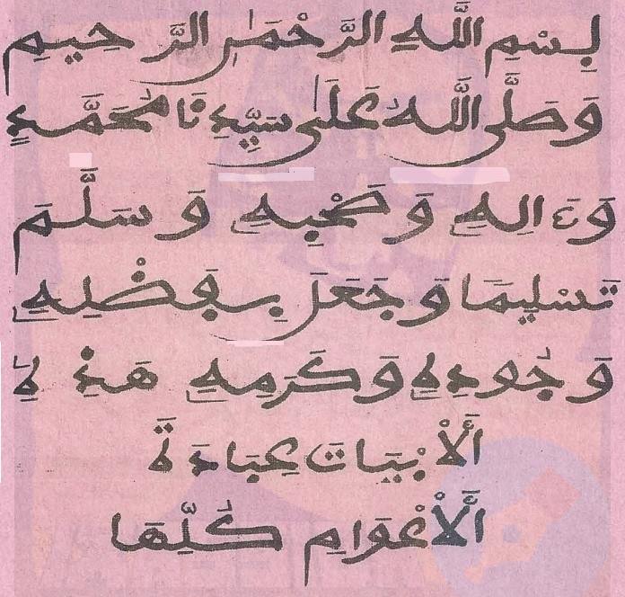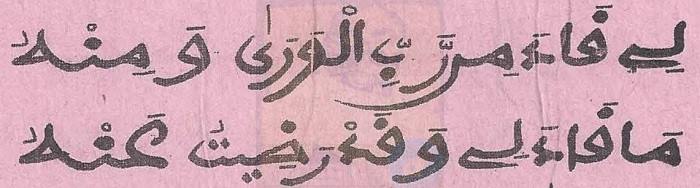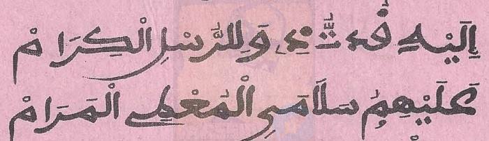 ilayhi khoudtou zî wa lil rousslil kirâme alayhimou salâmayil mouhtîl marâm |
