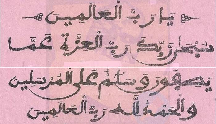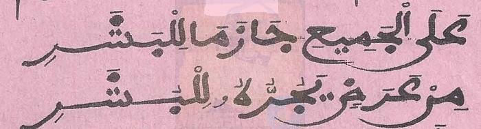 alal djamîhi djâzamâ lil bachari mine aradhine yadjourouhou lil buchari |