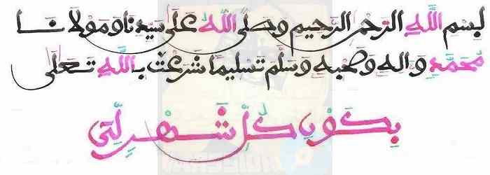 billâhi wal rahmâni wa rahîmi khad charahtou fî mâkhtârahou liya fakhad |