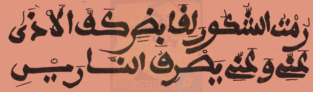 rumtu chukôra likhâbidin kaffal azâ hanni wa 'anni yasrifu nârayni |
