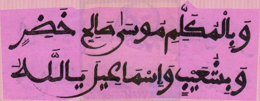 wa bil mukalimi mussâ sâlihine khadhirine wa bi chuhaybine wa ismâhîla yallahou |