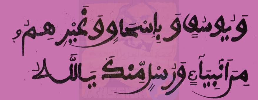 hâruna yussuha ilyâsine wa âdama mah dâouda zîl kifli hîssa lutha yallahou |